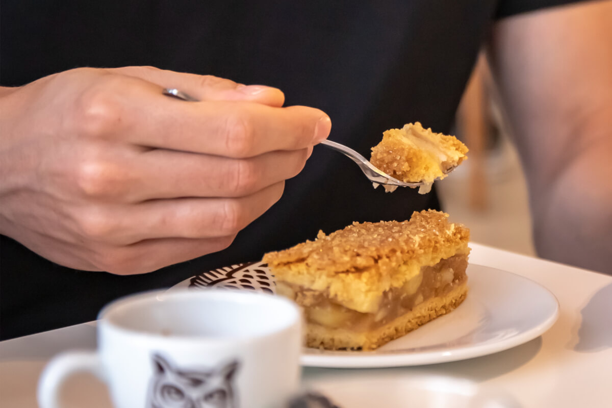 Mus jabłkowy z dużymi kawałkami jabłek zapieczony w cieście kruchym.