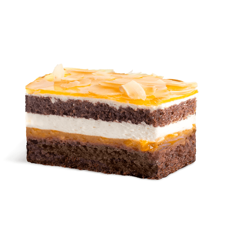 Poppy-seed sponge cakes with raisins and rum punch layered with a milk chocolate mousse.