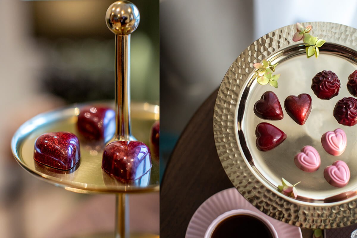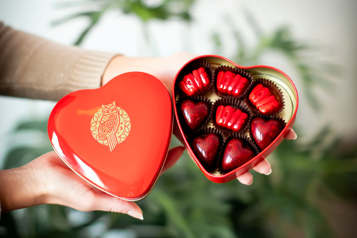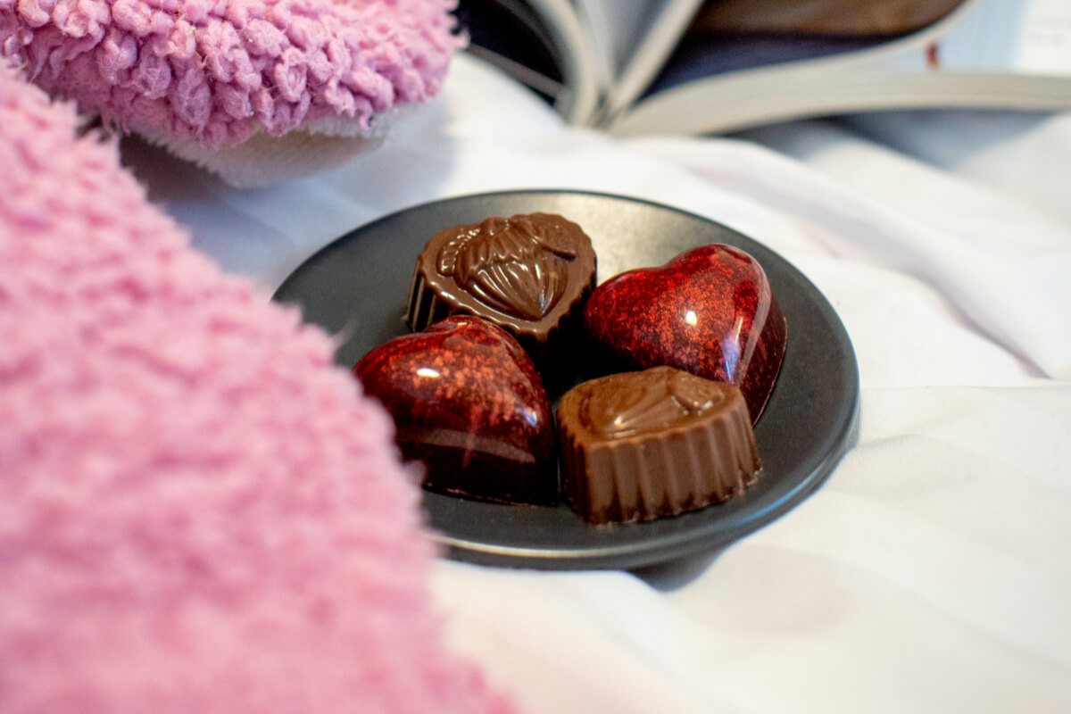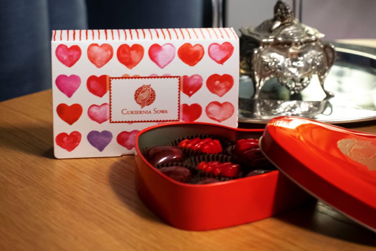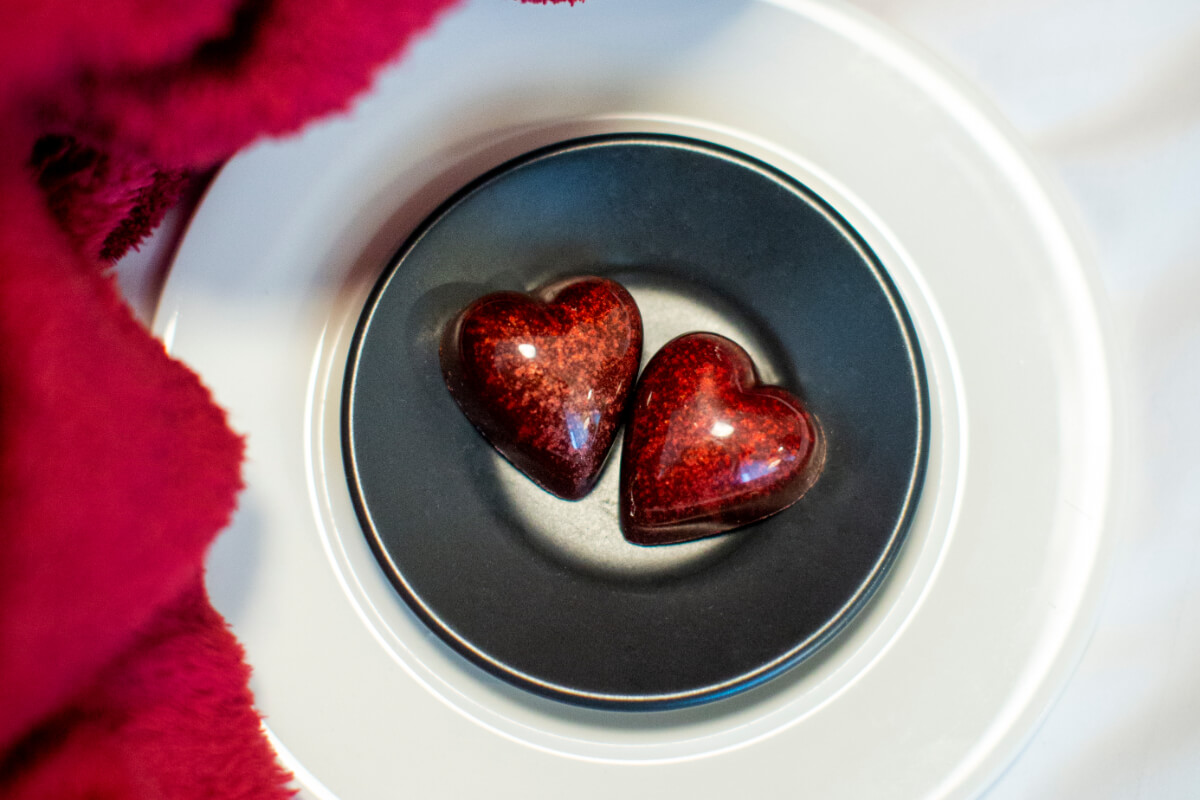 Czekolada deserowa, nadzienie malinowe i ganasz o smaku crème brûlée.