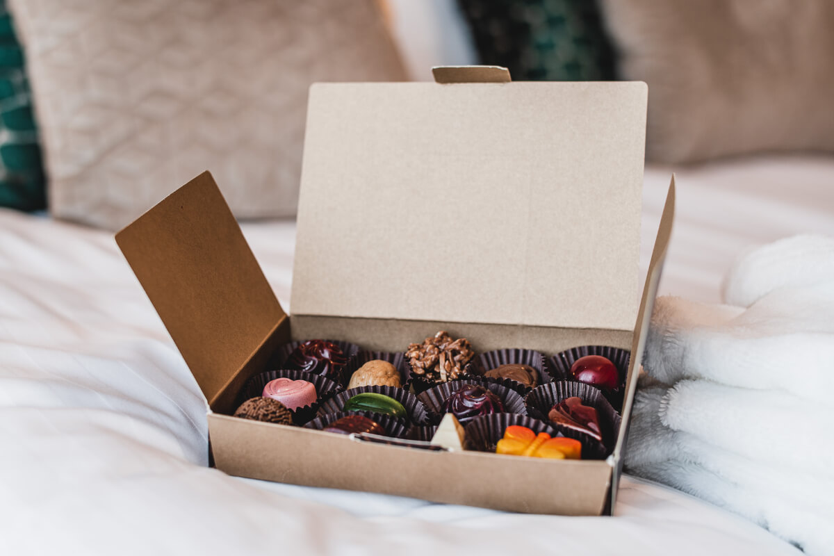 Czekolada mleczna, ganasz o smaku słonego karmelu z dodatkiem ciasteczek karmelowych.