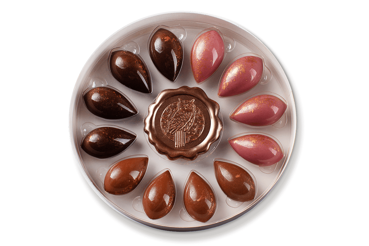 Kolekcja ręcznie przygotowanych pralin w trzech smakach: