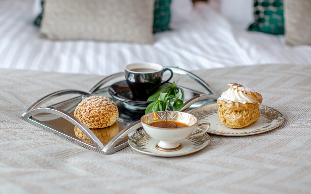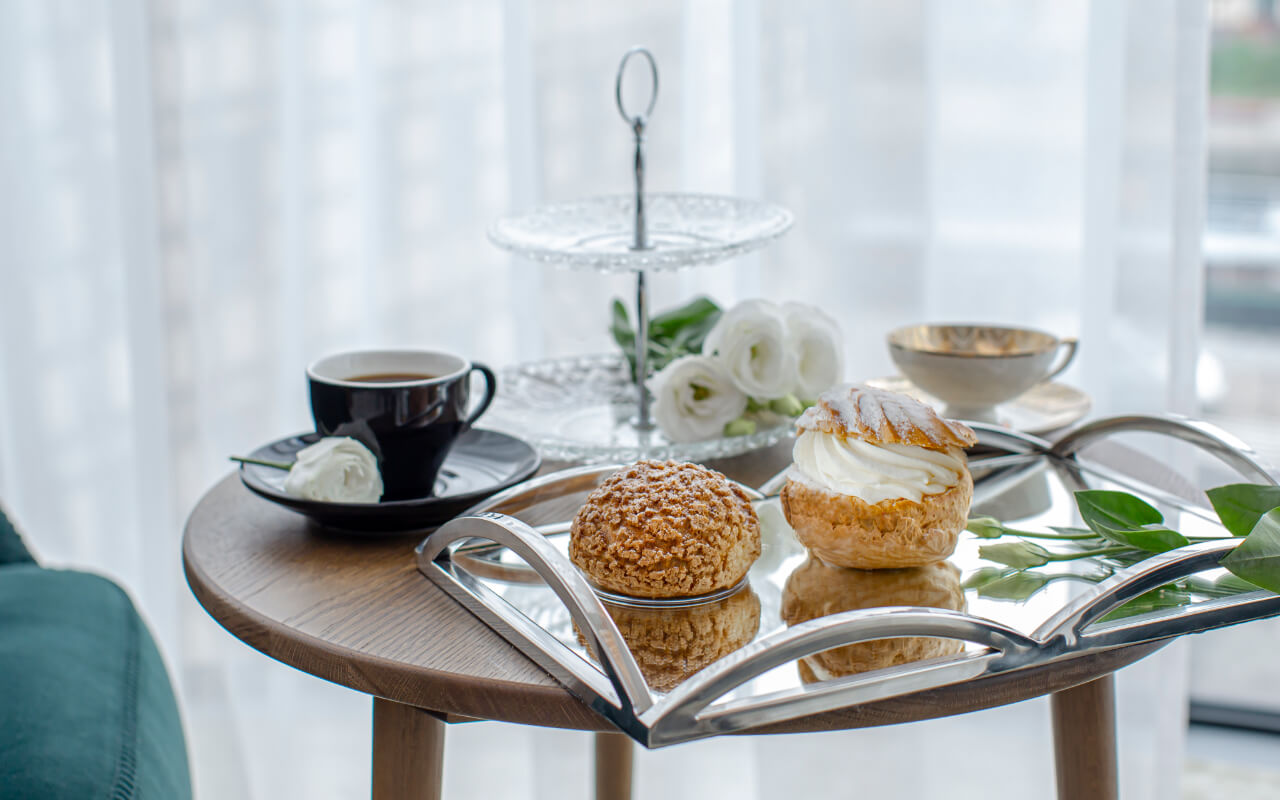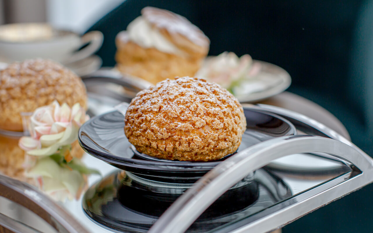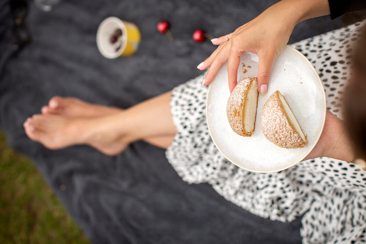 Ciasto parzone z kremem waniliowym wykończone cukrem pudrem.