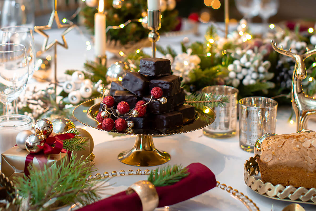 Ciasto piernikowe oblane czekoladą deserową, udekorowane cukrową posypką.