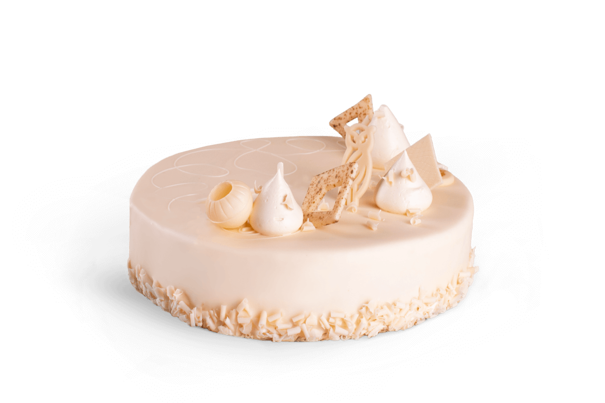 Biszkopt o smaku czekoladowym z czekoladową warstwą prażynkowa oraz ganaszem z białej czekolady.
