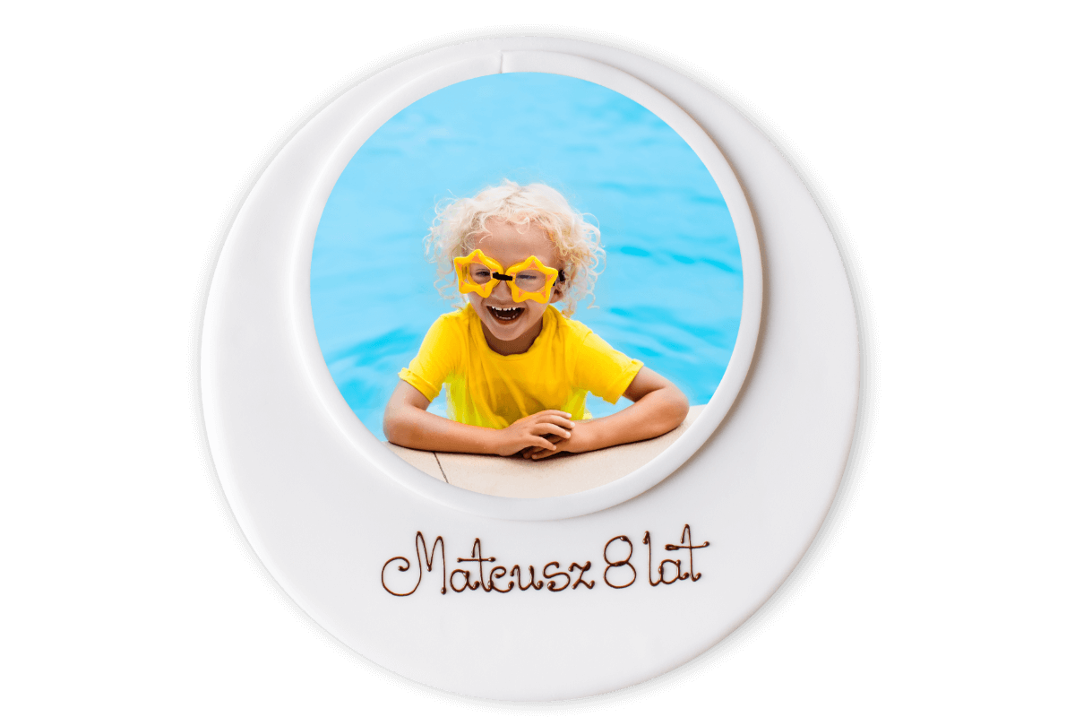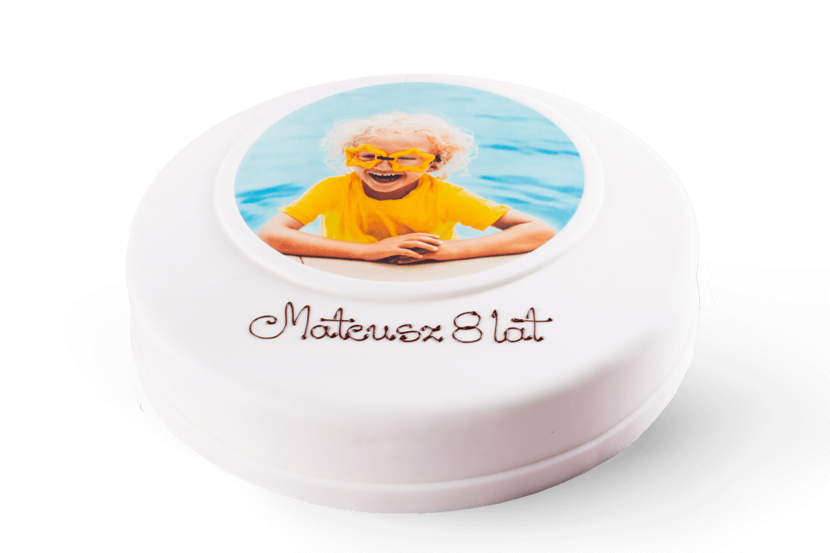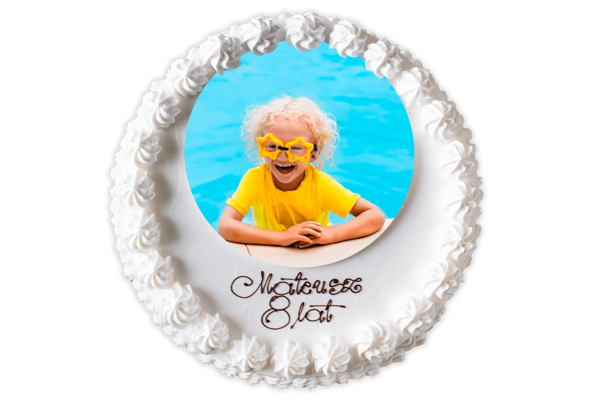 Tort z wybranym zdjęciem w masie cukrowej lub kremowej. Dostępny od 12 porcji.