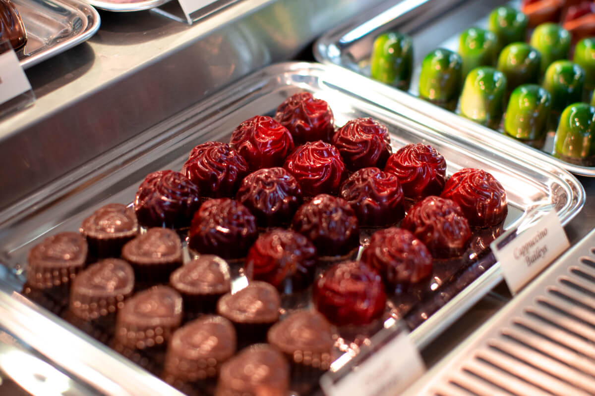 Czekolada mleczna, ganasz z orzechami laskowymi.