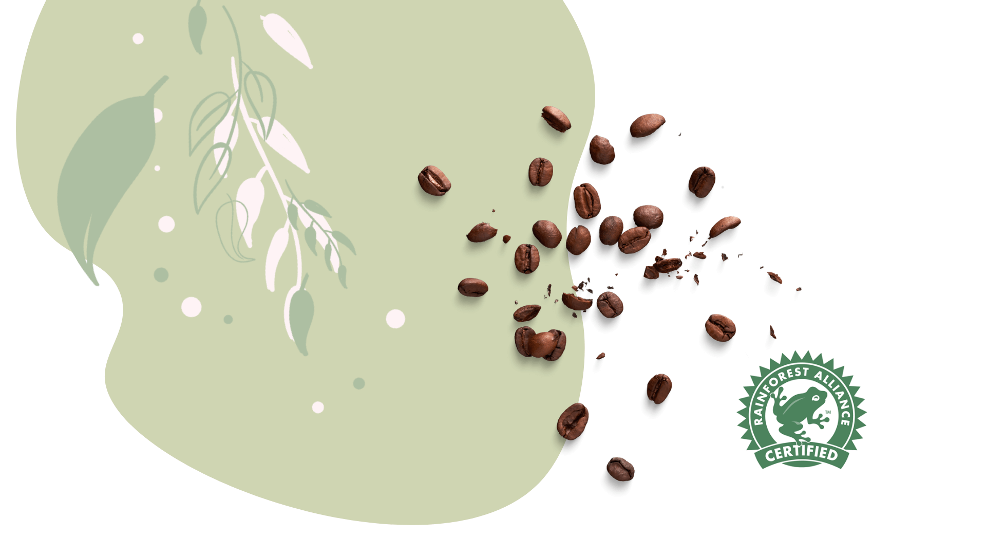 W poszukiwaniu najlepszej jakości produktów kierujemy się zachowaniem najwyższych standardów, dlatego surową kawę pozyskujemy m.in. od dostawców posiadających certyfikat Rainforest Alliance.